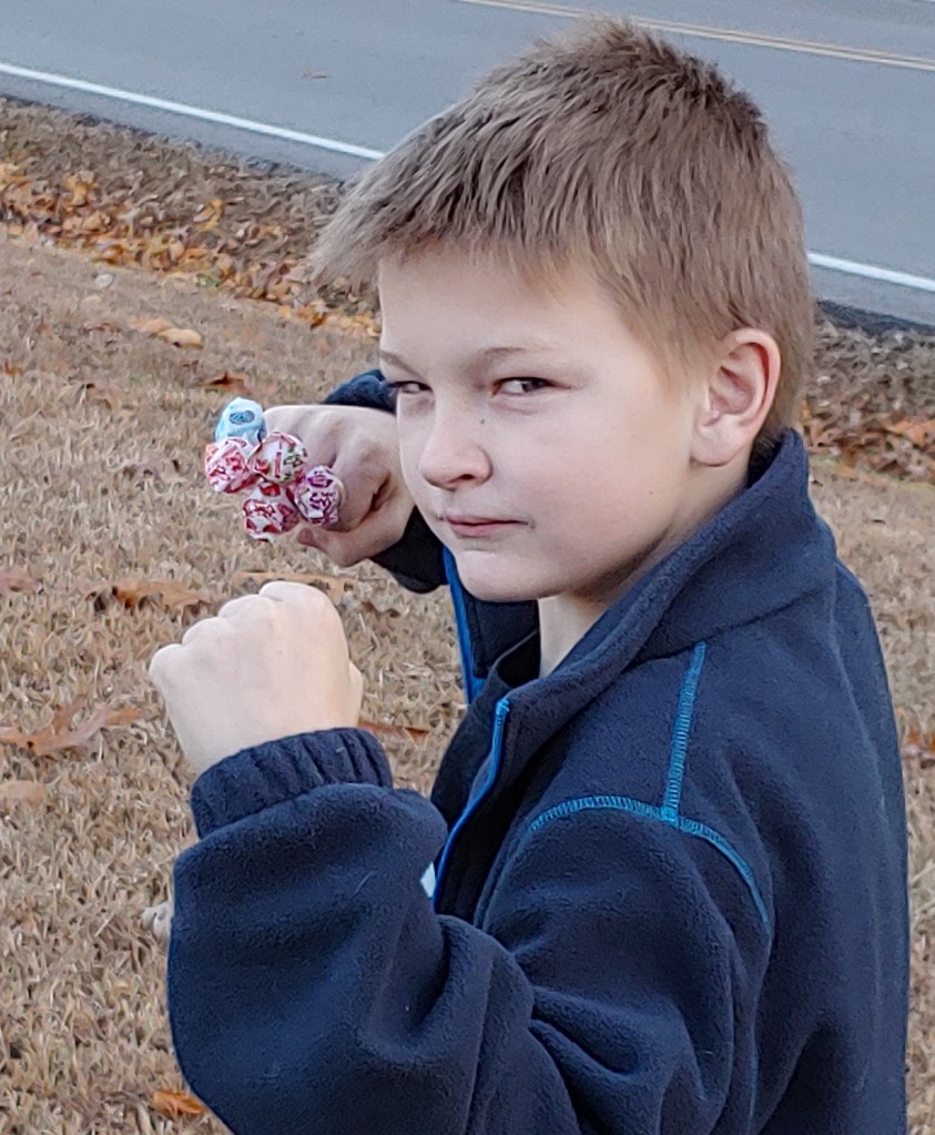 As you can see, he’s a little toughy. Rad to the bone. Not afraid of a n y thing. (We’re not counting asparagus are we?) He runs and jumps and shoots Nerf guns. Hoops and hollers, and sometimes wears dog collars. But he has his sirs and ma’ams, and pleases and thank yous down. Just watch out for his sucker punch. In the summers he has a mohawk.